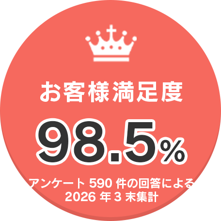 ※アンケートに回答していただいた方590件のうち、当事務所の対応が良かったとお答えいただいた方581件/2026年3月末集計