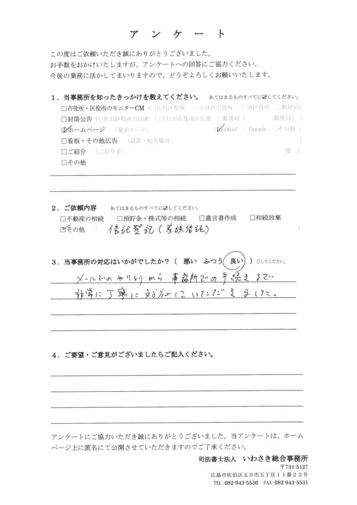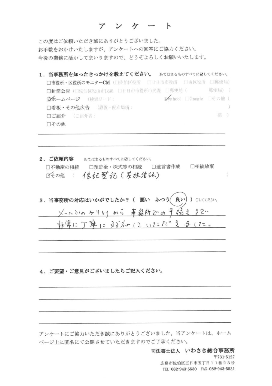 お客様の声-556|広島 相続遺言の相談窓口(司法書士法人いわさき総合事務所)