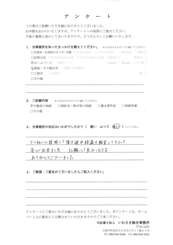 お客様の声-564|広島 相続遺言の相談窓口(司法書士法人いわさき総合事務所)