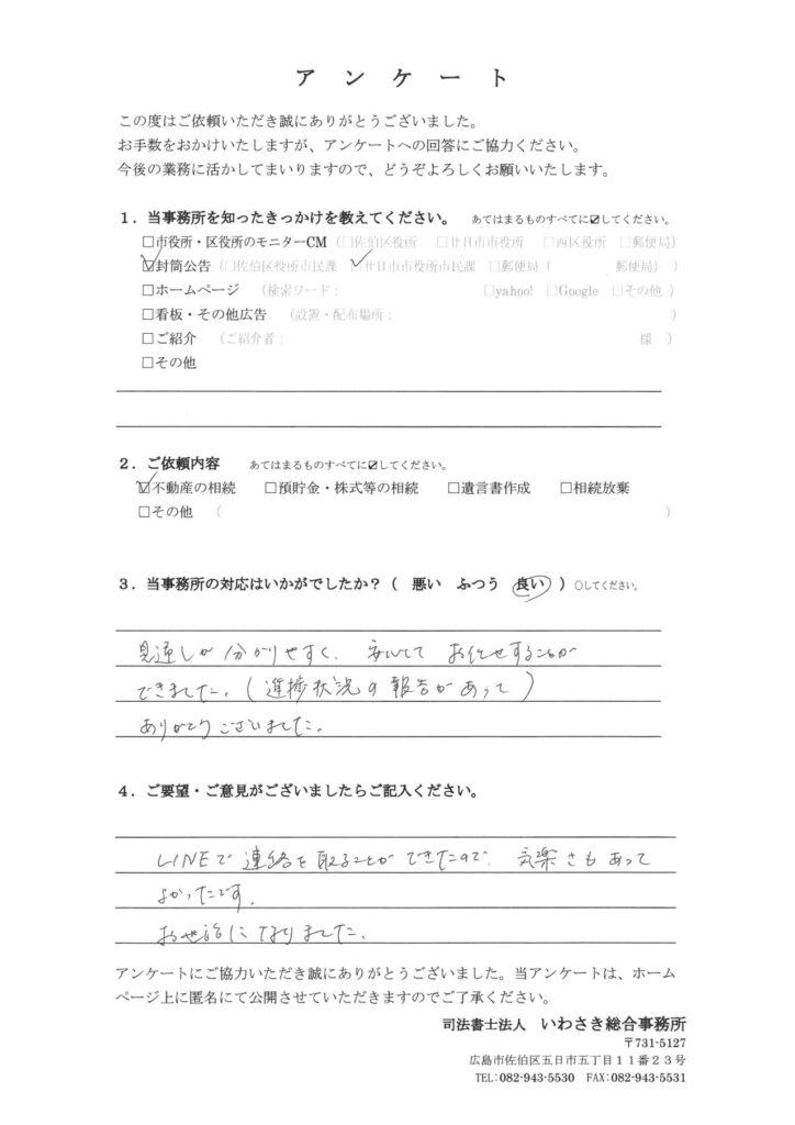 お客様の声-576|広島 相続遺言の相談窓口(司法書士法人いわさき総合事務所)