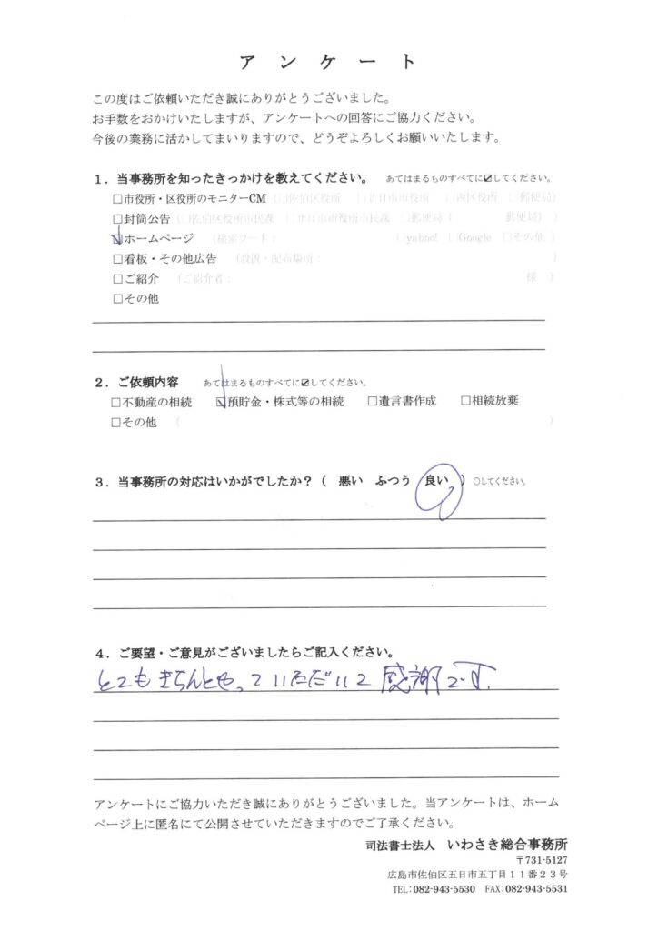 お客様の声-579|広島 相続遺言の相談窓口(司法書士法人いわさき総合事務所)