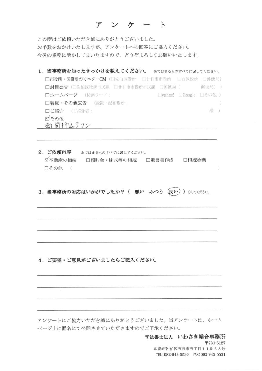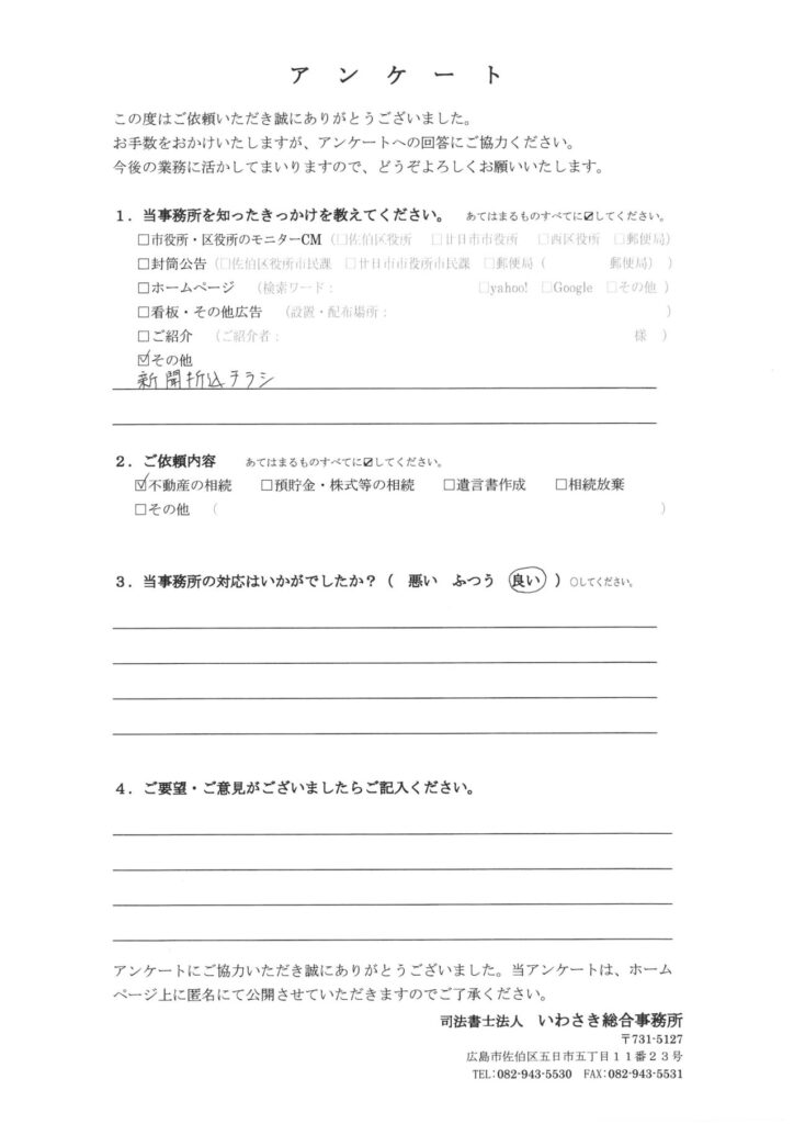 お客様の声-589|広島 相続遺言の相談窓口(司法書士法人いわさき総合事務所)
