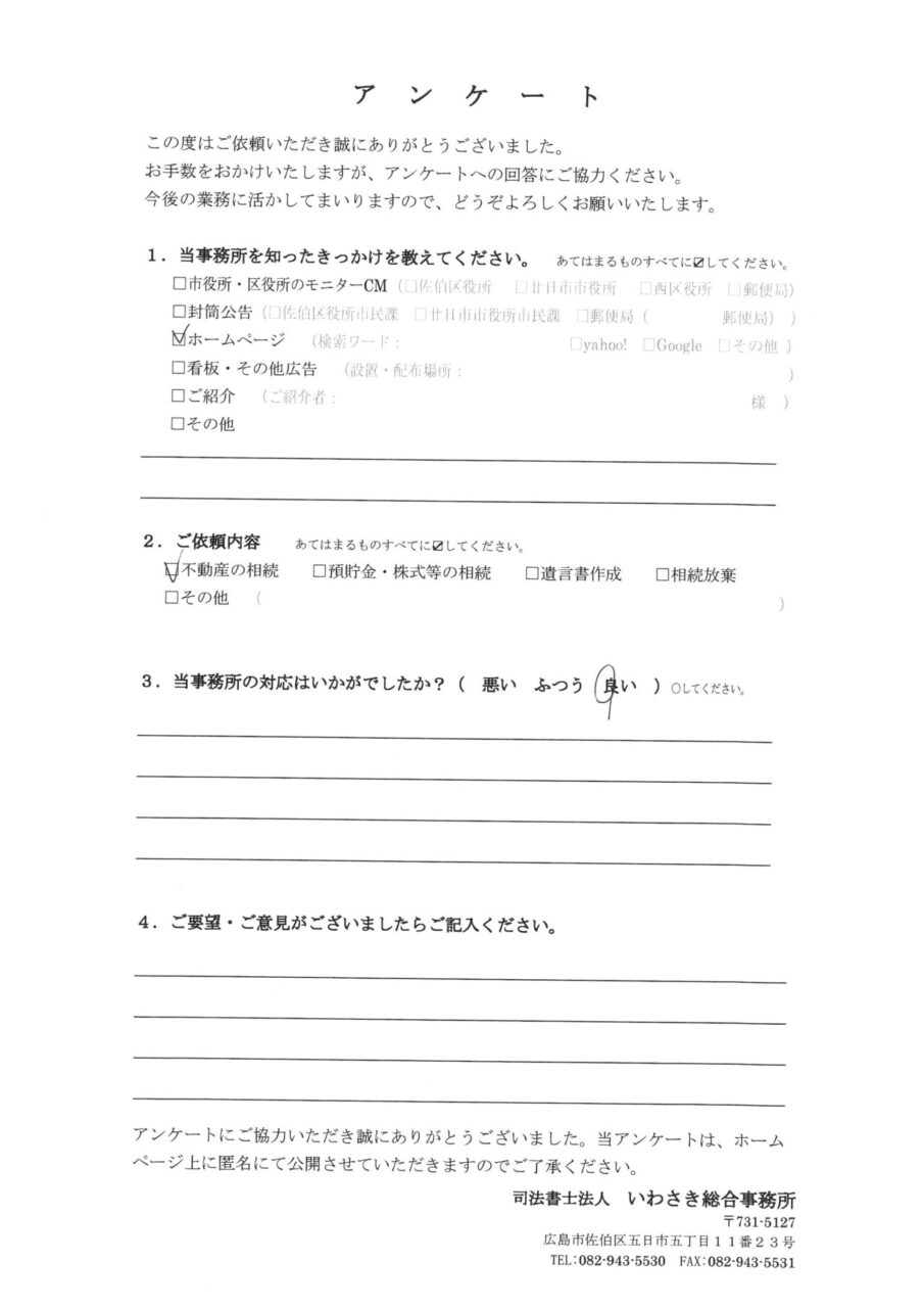 お客様の声-590|広島 相続遺言の相談窓口(司法書士法人いわさき総合事務所)