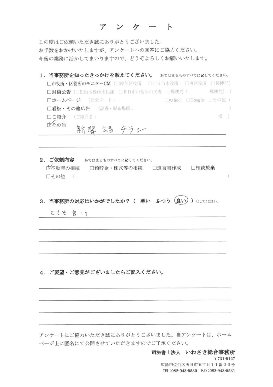 お客様の声-591|広島 相続遺言の相談窓口(司法書士法人いわさき総合事務所)