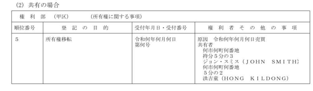 なお、所有権以外の地上権や賃借権、抵当権などほかの権利にはこの併記は適用されません。また、外国法人の所有者に関しても適応はありません。