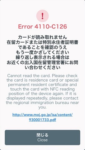 再度正しい在留カード番号を入力して、カードの読み取りを行ってください。