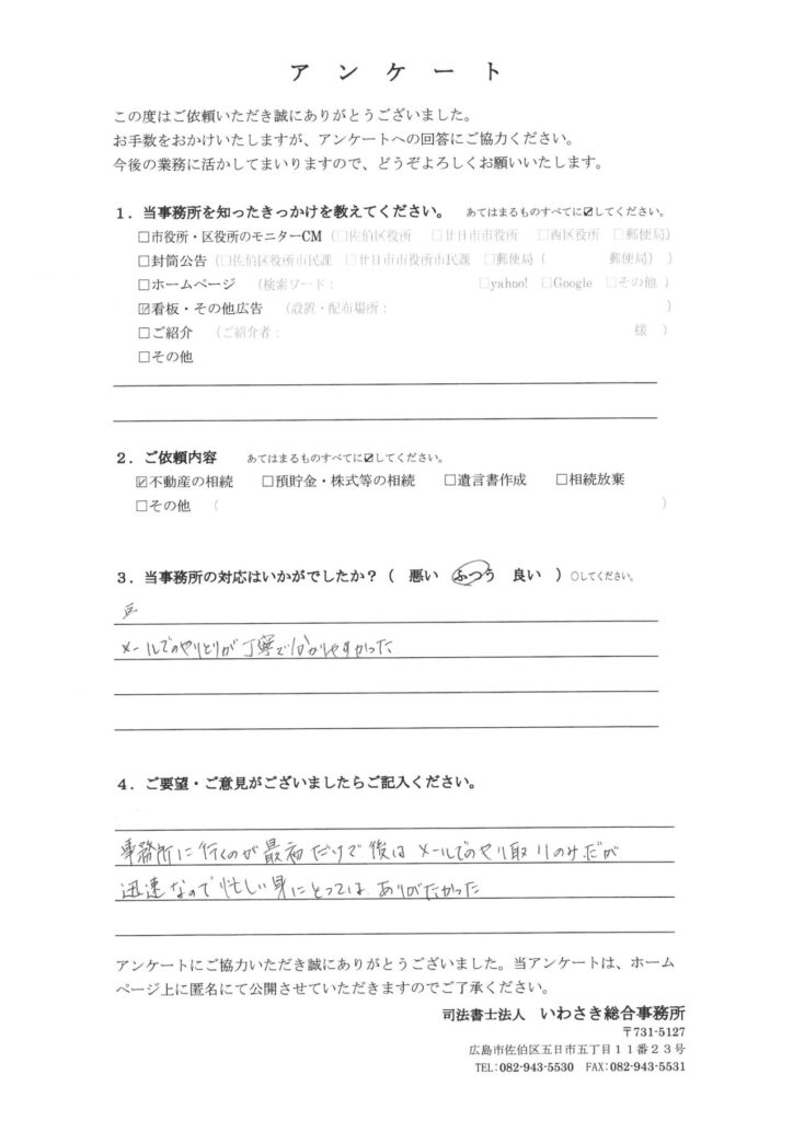 事務所に行くのが最初だけで、後はメールでのやり取りのみだが迅速なので忙しい身にとってはありがたかった。